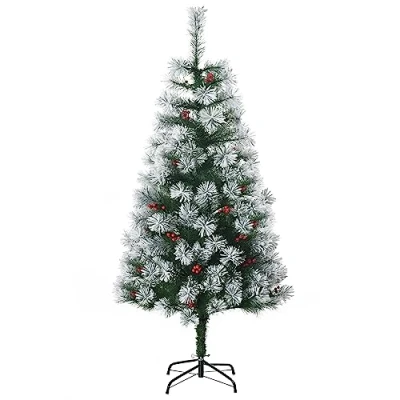 HOMCOM Indoor Christmas Tree Artificial Berry Xmas Decoration with Metal Stand and 184 Tips (5FT(150CM))
