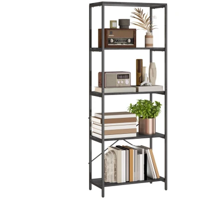 Striking storage, for an organised home, with this HOMCOM bookshelf. With five shelves there's plenty of room for holding books, decorations photos and more - easy to organise too. The metal frame means a strong core, fitted with a back 'X' bar for extra support. In a black and wood-effect design, this is an industrial-style design which brings added character into your home. Specifications: ● Colour: Dark Grey, Black ● Material: MDF, Metal ● Overall Dimension: 79W x 35D x 161H cm ● Shelf Height: 36.5H cm ● Load Capacity: 50 kg (total), 10 kg (each shelf) ● Item Label: 836-643V00CG Features: ● Five shelves mean plenty of storage and holding room ● A strong metal frame, with back 'X' bar for extra support ● Grey wood-effect shelves and a black frame for a striking industrial-style design ● Anti-tipping straps included to secure unit to wall ● Adjustable feet to keep unit balanced ● For use all over the home: bedroom, dining room, home office and beyond ● Maximum load 10 kg, easy to