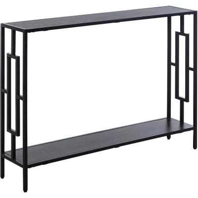 The console table features a distinctive square design, reminiscent of art-deco elegance, which adds a sophisticated charm to your living space. Its grey and black colour scheme creates a versatile look that can seamlessly integrate into various decor styles, making it a timeless addition to your home for years to come.
