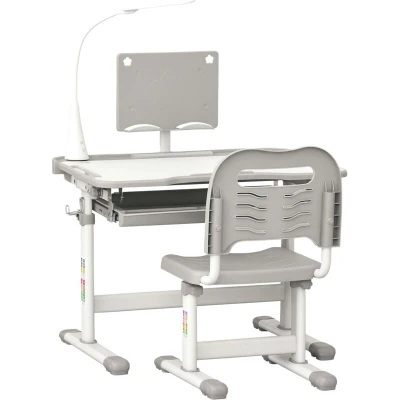 HOMCOM Kids Desk and Chair Set, Height Adjustable Study with USB Lamp, Storage Drawer for Study, Grey White