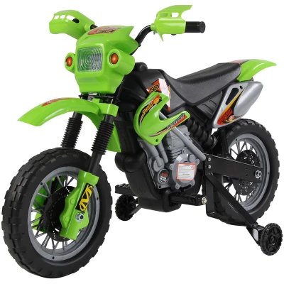 General description The HOMCOM Kids Electric Motorbike is an ideal gift for young riders aged 3 to 6 years. This vibrant green motorbike features an easy on/off switch, bright front spot headlights, and entertaining musical and horn sound effects, ensuring a fun riding experience. It is designed for durability and can run continuously for up to 45 minutes, making it perfect for extended playtime. Technical specifications Material: PP Colour: Green Weight capacity: 25kg Overall Dimension: 102L x 53W x 66H (cm) Seat Dimension: 32L x 9.5W x 46H (cm) Wheel Diameter: Φ30cm Single Motor: 25W Battery: 6V/4AH Speed: 2.5Km/h Charging Time: 8-12 hours (first time: 4-6 hours) Package Dimension: 74L x 50W x 27H (cm) Compatibility and accessories Includes: 1 set of screws, 1 battery, 1 battery charger, and instruction manual Installation Assembly needed with instructions supplied Usage Suitable for a variety of flat roads Playtime can last for 45 minutes based on constant riding Other information