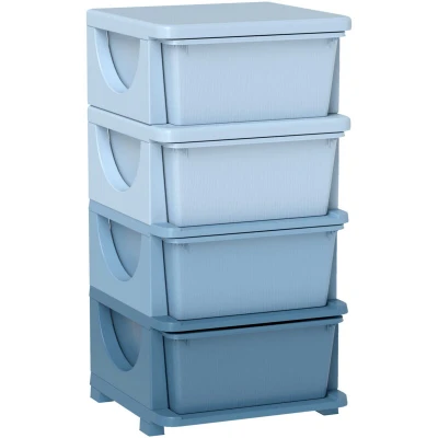 HOMCOM Kids Storage Units with 4 Drawers Tier Chest Vertical Dresser Tower Toy Organiser for Nursery Playroom Kindergarten Blue
