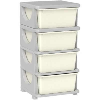 HOMCOM Kids Storage Units with 4 Drawers Tier Chest Vertical Dresser Tower Toy Organiser for Nursery Playroom Kindergarten Cream