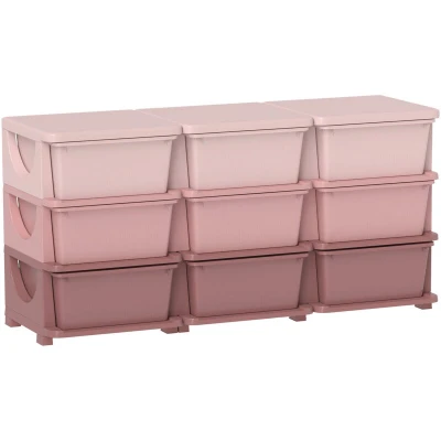 HOMCOM Kids Storage Units with 9 Drawers 3 Tier Chest Vertical Dresser Tower Toy Organiser for Nursery Playroom Kindergarten Pink