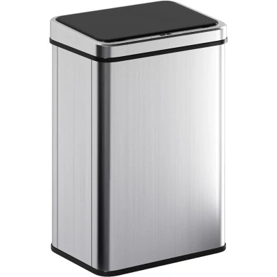 General description The HOMCOM Kitchen Bin with Fast Motion Sensor is designed to provide a touch-free waste disposal solution, making it ideal for busy kitchens. With its sleek stainless steel construction, this bin not only enhances the aesthetic of your space but also ensures hygiene by minimizing contact. The sensor technology allows for instant opening with a simple wave of your hand, making it convenient during food prep and reducing mess. Technical specifications Colour: Silver Tone, Black Material: ABS, 430 Stainless Steel Overall Dimension: 35.5L x 26W x 55H cm Opening Size of Lid: 30.8L x 16.3W cm Capacity: 40L Sensing Distance: 15-20 cm Sensing Time: 0.5s Battery: 4 x AA (not included) Open/Close Cycles: 10,000 Usage Features a motion sensor for hygienic, hands-free opening in just 0.5 seconds. Large 40L capacity reduces the frequency of bag changes. Extra-wide opening allows for easy disposal of bulky trash without spills. Dual modes and a soft-close lid provide flexible