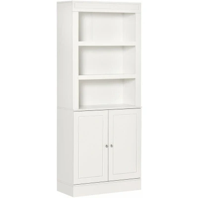 HOMCOM Kitchen Cupboard with 6 tier Shelving, Freestanding Storage Cabinet, Pantry 3 Open Compartments and Double door Cabinet Adjustable Shelves, White