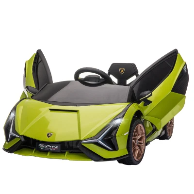 HOMCOM Lamborghini Sian Licensed 12V Kids Electric Ride On Car 2 Motors Toy with Remote Control Music Lights MP3 for 3 5 Years Green