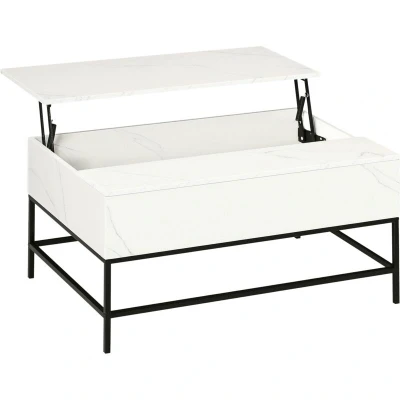 The HOMCOM Coffee Table Marble Lift Top White/Black is a modern, boxy coffee table featuring a lift-top design for adjustable workspace or dining, plus a hidden storage compartment. It boasts a durable MDF body, strong metal frame, and a stylish monochrome finish to complement any living room decor.