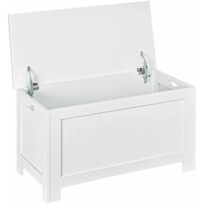 HOMCOM Lift Top Storage Chest oy Box Organizer with Lid and Safety Hinges for Bedroom Entryway Living Room White