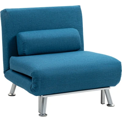 HOMCOM Linen Chair Bed, 3 in 1 Convertible Sleeper with Adjustable Backrest, Pillow, for Living Room, Bedroom, Blue