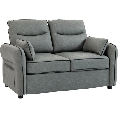 HOMCOM Loveseat Sofa, Faux Leather Sofa with Thicken Cushion, Grey
