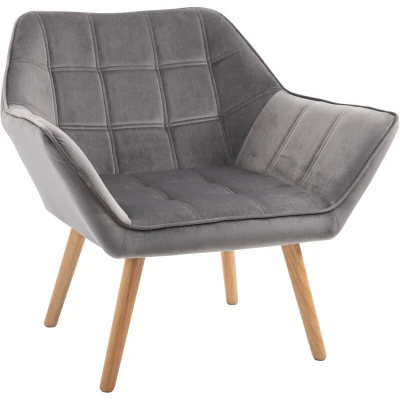 HOMCOM Luxe Velvet Feel Accent Chair W/Wide Arms Slanted Back Padding Wood Legs Grey