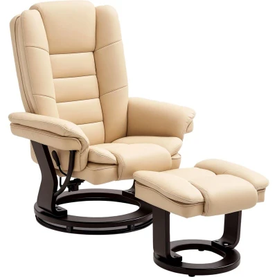 HOMCOM Manual Recliner and Footrest Set PU Leather Leisure Lounge Chair Armchair with Swivel Wood Base, Beige