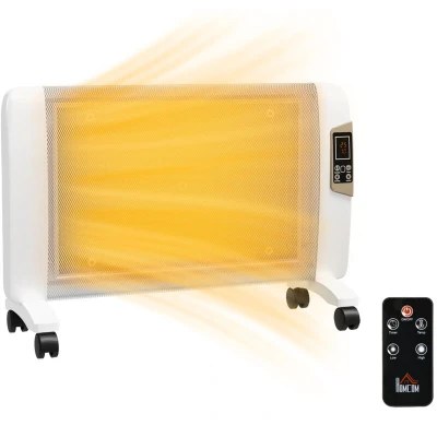HOMCOM Mica Electric Space Heater, Portable Heater for Home with 2 Heat Settings, Living Room, Study, Garage, Adjustable Temperature 18 30C, 1000W/2000W, White