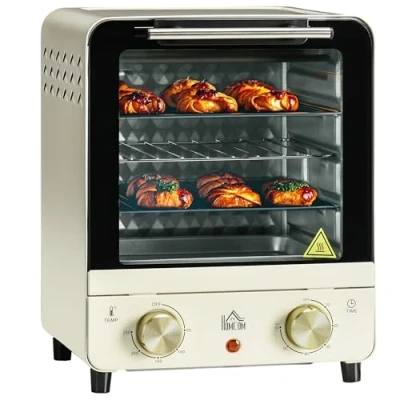 HOMCOM Mini Oven, 15 Litres Electric Oven and Grill with 60 230℃ Adjustable Temperature, Minute Timer, Include Baking Tray, Wire Rack Crumb 1000W, Cream White