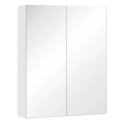 HOMCOM Mirror Cabinet, Wall Mount Bathroom Storage Cabinet with Adjustable Shelf, Double Door Cupboard, 60 x 15 75 cm, White