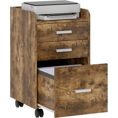 HOMCOM Mobile Filing Cabinet, File Cabinet with 3 Drawers, Rustic Brown