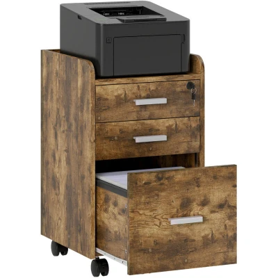 HOMCOM Mobile Filing Cabinet, Lockable File Cabinet with 2 keys Rustic Brown