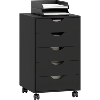 HOMCOM Mobile Vertical Filing Cabinet with 5 Drawers for Home Office, Black