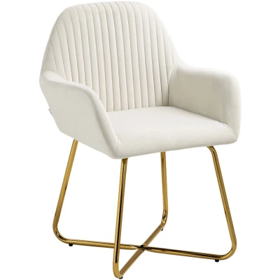 HOMCOM Modern Accent Chair, Velvet Touch Fabric Upholstered Armchair with Metal Base for Living Room, Bedroom and Dinning Cream White