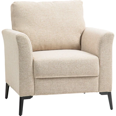 HOMCOM Modern Armchair, Linen Fabric Upholstered Accent Chair with Metal Legs, Wood Frame and Padded Cushion for Living Room Bedroom Office, Beige