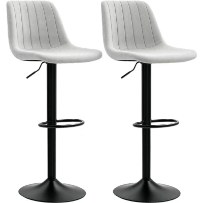 HOMCOM Modern Bar Stools Set of 2, Height Adjustable Swivel Chairs with Backrest, Gas Lift and Footrest, Chenille Barstools for Breakfast Bar, Counter, Kitchen Island, Grey