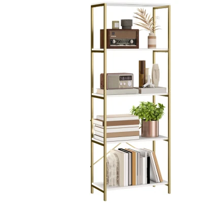 Striking storage, for an organised home, with this HOMCOM bookshelf. With five shelves there's plenty of room for holding books, decorations photos and more - easy to organise too. The metal frame means a strong core, fitted with a back 'X' bar for extra support. In a gold tone and wood-effect design, this is a modern-style design which brings added character into your home. Specifications: ● Colour: White, Gold Tone ● Material: MDF, Metal ● Overall Dimension: 79W x 35D x 161H cm ● Shelf Height: 36.5H cm ● Load Capacity: 50 kg (total), 10 kg (each shelf) ● Item Label: 836-643V00WT Features: ● Five shelves mean plenty of storage and holding room ● A strong metal frame, with back 'X' bar for extra support ● White wood-effect shelves and a gold tone frame for a striking modern-style design ● Anti-tipping straps included to secure unit to wall ● Adjustable feet to keep unit balanced ● For use all over the home: bedroom, dining room, home office and beyond ● Maximum load 10 kg, easy to