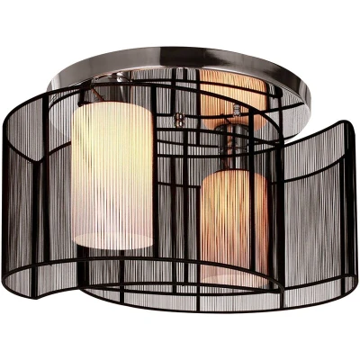 This stylish ceiling light is designed with a modern yet timeless appeal. Featuring two crescent-shaped wire-drawing shades paired with cream white glass lampshades, it effortlessly combines elegance and functionality. The design is versatile, making it suitable for various rooms within your home, including living rooms, bedrooms, dining areas, hallways, and more. With its classic appearance, it complements a wide range of furniture styles.