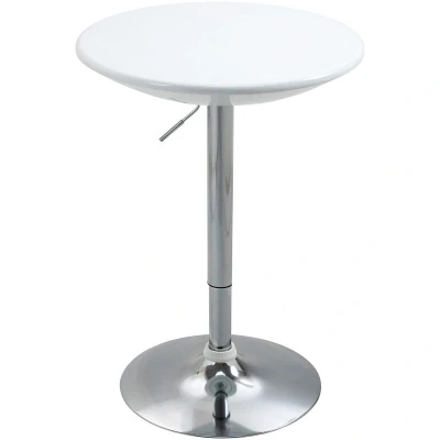 HOMCOM Modern Round Bar Table Adjustable Height Home Pub Bistro Desk Swivel Painted Top with Silver Steel Leg and Base, White