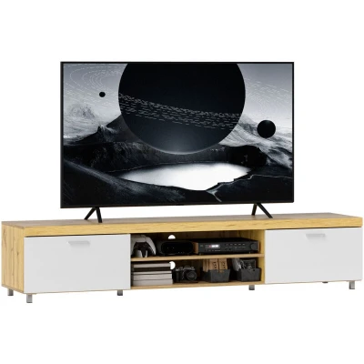 Elevate your living space with this stunning modern TV cabinet from HOMCOM, designed to accommodate televisions up to 90 inches. The sleek oak wood grain surface paired with crisp white doors brings a stylish touch to any décor, making it a perfect addition to your home, whether your style is contemporary, minimalist, or traditional.