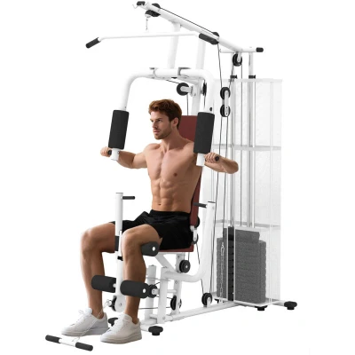 Constructed from a robust steel tube, this home gym station promises a stable and reliable workout foundation. The inclusion of a counterweight block, safeguarded by a steel mesh, enhances your training experience, allowing you to push your limits with confidence. Nylon-coated steel wires have been rigorously tested to support up to 500 kg, ensuring durability and safety during use.