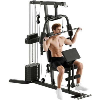 ManoManoGeneral description The HOMCOM Multi Home Gym Machine is designed for a full-body workout, featuring a 45kg weight stack that allows users to perform a variety of exercises effectively. Other information
