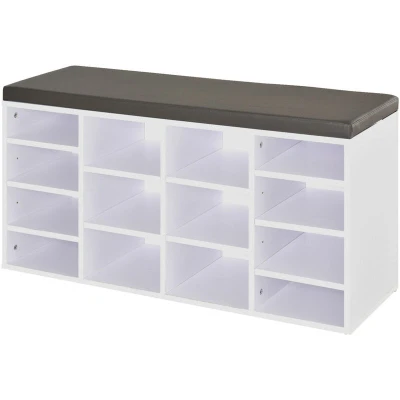HOMCOM Multi Storage Shoe Rack w/ 14 Compartments Cushion Moving Shelves Solid Frame Foot Pads Home Office Tidy Organisation Boots Trainers White