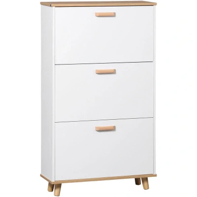 Crafted from high-quality particle board, the HOMCOM shoe cupboard is built for everyday use, offering both durability and stability. The cabinet's pine wood feet provide sturdy support, ensuring it remains stable and secure, even when loaded with multiple pairs of shoes. With a maximum load capacity of 30 kg, you can be confident in this cabinet's ability to handle your footwear without compromising its integrity.