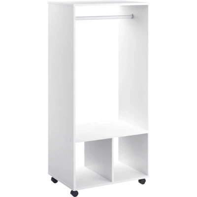 HOMCOM Open Wardrobe for Bedroom, Small on Wheels with Clothes Rail, Storage Shelves, Mobile Garment Rack Storage, Cloakroom, Hallway, White