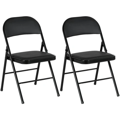 HOMCOM Padded Folding Chairs Set of 2 PU Leather Foldable with Cushioned Seat and Metal Frame for Home Office Dining Computer Desk Reception Room Black