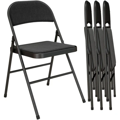 HOMCOM Padded Folding Chairs Set of 4 Foldable with Cushioned Seat and Metal Frame for Home Office Dining Computer Desk Reception Room Black
