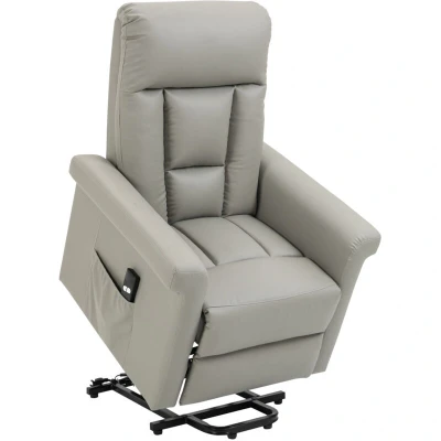 HOMCOM Power Lift Chair, PU Leather Recliner Sofa Chair for Elderly with Remote Control, Side Pocket, Grey