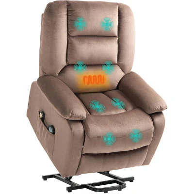 HOMCOM Power Lift Riser and Recliner Chair with Vibration Massage Heat, Velvet Fabric Electric Armchair for Elderly Remote Controllers, Side Pocket, Quick Assembly, Brown