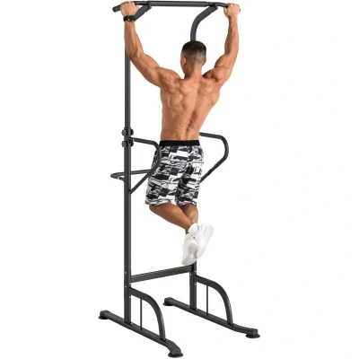 HOMCOM Power Tower Dip Station Pull Up Bar Multi Function Push Equipment with Adjustable Height for Home Gym Strength Training Workout Fitness
