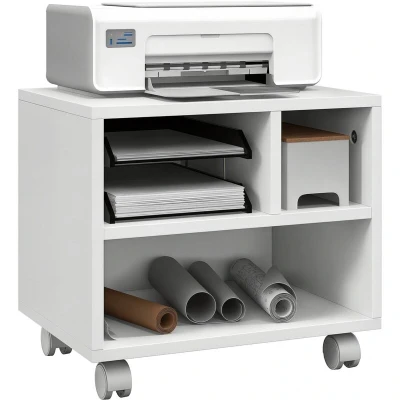 HOMCOM Printer Stand with Storage Cart on Wheels for Home Office White 924 092V00WT