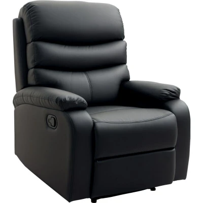 General description This manual reclining chair with footrest from HOMCOM is a stylish and comfortable addition to any room in your home. It features thick sponge wrapped in PU leather, providing both comfort and an elegant appearance. The chair easily reclines, allowing you to sit upright for work, lounge back to watch TV, or fully recline for a nap. The footrest extends from the front for leg support and can be easily retracted when not in use. Technical specifications Colour: Black Material: PU Leather, Sponge, Wood, Metal Overall Dimensions (Upright): 80W x 90D x 105H cm Overall Dimensions (Fully Reclined): 80W x 162D x 86H cm Seat Size: 51W x 48D x 48H cm Seat Thickness: 13 cm Back Size: 72W x 67H x 13D cm Suitable for User Height: ≤190 cm Weight Capacity: 125 kg Suggested Assembly Time: 15 min Installation Simple installation required, approximately 15 minutes. Usage 135° manual reclining back for customizable relaxation. Soft, breathable, and easy-care leather-like fabric. 'S'