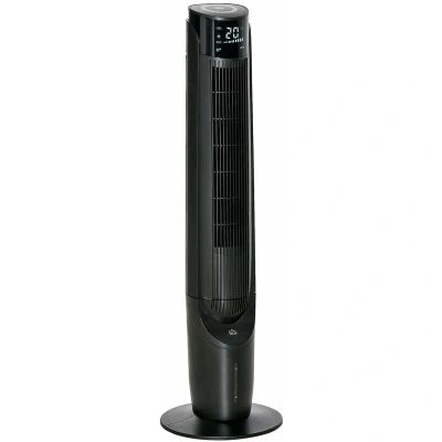General description Keep your cool this summer with the HOMCOM Quiet Air Cooler. This evaporative ice cooling tower fan is designed to provide refreshing air, featuring an ice box that enhances cooling efficiency. With adjustable speeds and modes, it caters to your comfort needs while covering a larger area with its oscillating function. Technical specifications Colour: Black body, White LED display Material: ABS, PP Overall Dimension: 31.5W x 31.5D x 107H cm Water Tank: 2.8L Power Cord Line Length: 1.5m Remote Distance: 5m Voltage: 220-240V/50-60Hz Power: 60W Noise: 58.2dB Battery (remote control): CR2025 button battery (included) Certification: UKCA+CE (EMC, ERP, LVD, ROHS) Item Label: 824-047V70WT Usage 3 speeds: low, medium, and high 4 modes: normal, natural, sleep, and child Child mode turns off LED display after 30 seconds of inactivity 70° oscillation for wide coverage 12-hour timer with 1-hour intervals, ideal for nighttime use Control via LED sensor panel or remote control