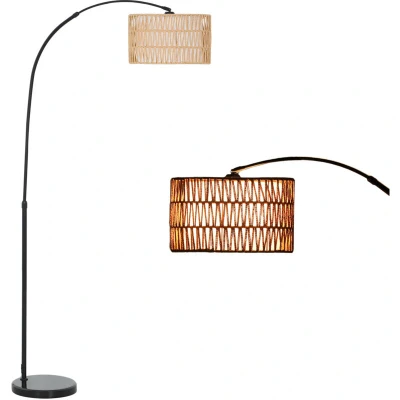 HOMCOM Rattan Floor Lamp for Living Room, Farmhouse Arc Standing with Dual Layer Shade & Foot Switch, Height Adjustable Minimalist Tall Pole Lampshade Bedroom, Office, Black