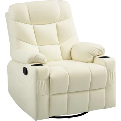 HOMCOM Recliner Armchair, Swivel PU Leather Manual Reclining Chair with Adjustable Leg Rest, Drink Holders, Side Pockets, for Home Living Room, Cream White