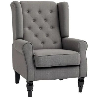 HOMCOM Retro Accent Chair, Wingback Armchair with Wood Frame Button Tufted Design for Living Room Bedroom, Dark Grey