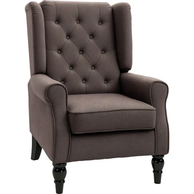 HOMCOM Retro Accent Chair Wingback Armchair with Wood Frame for Living Room Brown