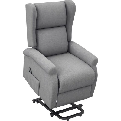 General description Bring assistance into your life whilst keeping your independence with the HOMCOM lift-up armchair. This electric reclining chair features a strong steel frame that supports up to 200 kg, ensuring durability and stability. It is thickly padded for comfort and includes a 135° reclining back and footrest, which can be easily controlled with the attached remote. The gentle lifting angle makes it easy to sit down and get out of the chair, providing convenience and support. Technical specifications Colour: Grey Materials: Linen (100% Polyester), Sponge, Steel, Wood Straight Size: 72.5W x 94D x 109H cm Recline Size: 72.5W x 160D x 94.5H cm Standing Size: 72.5W x 86D x 142H cm Seat Dimensions: 51.5D x 46W cm Seat to Floor Height: 50 cm Backrest Max Angle: 135° Armrest Height: 62 cm Power Cord Length: 1.4 m Remote Control Cable Length: 2 m Weight Capacity: 200 kg Input Voltage: AC 100-240V Item Label: 713-031V71GY Other information Certification: EMC, ROHS