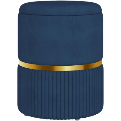 HOMCOM Round Pouffe, Velvet feel Fabric Upholstered Storage Foot Stool with Removable Top, Padded Seat and Hidden Space for Living Room, Dark Blue