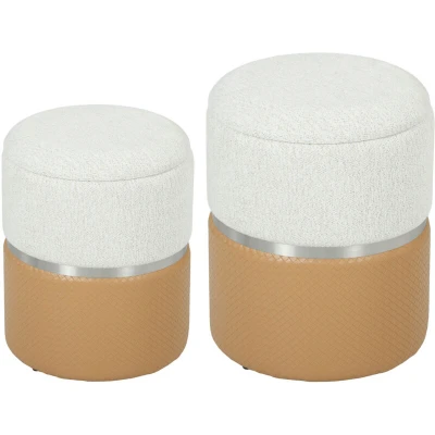 HOMCOM Round Storage Ottoman Set of 2, Nesting Footrest Stool, Cream & Brown